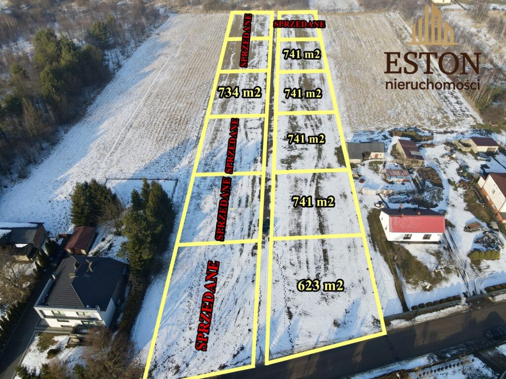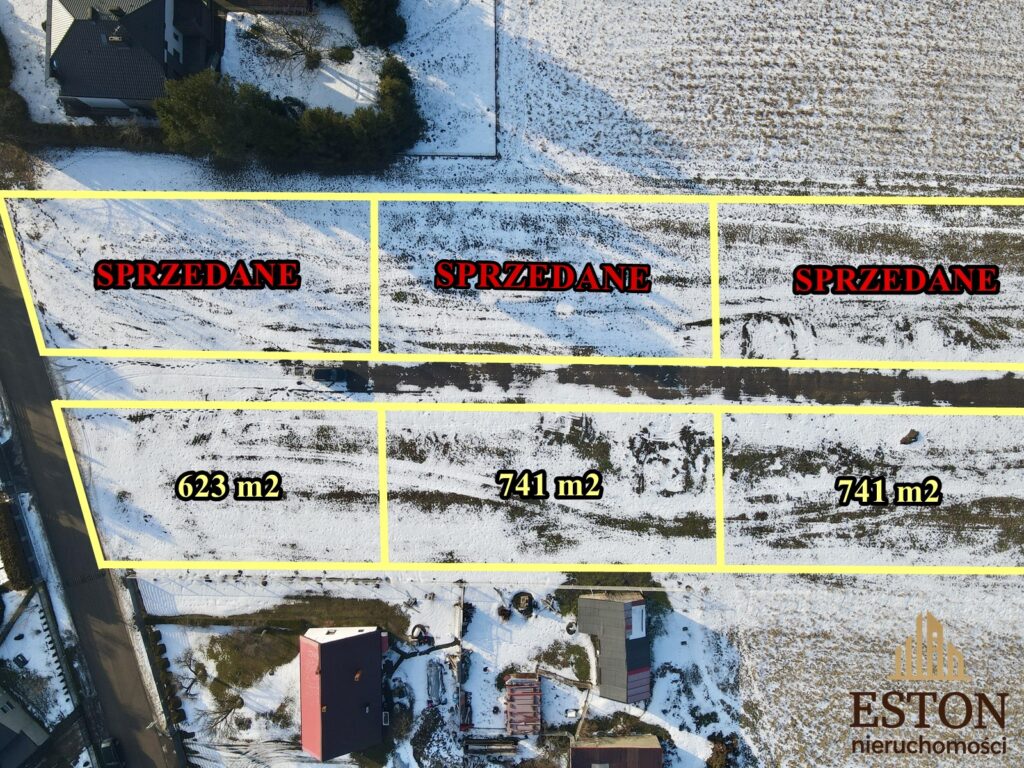 działki o powierzchni od 623 do 754 m²